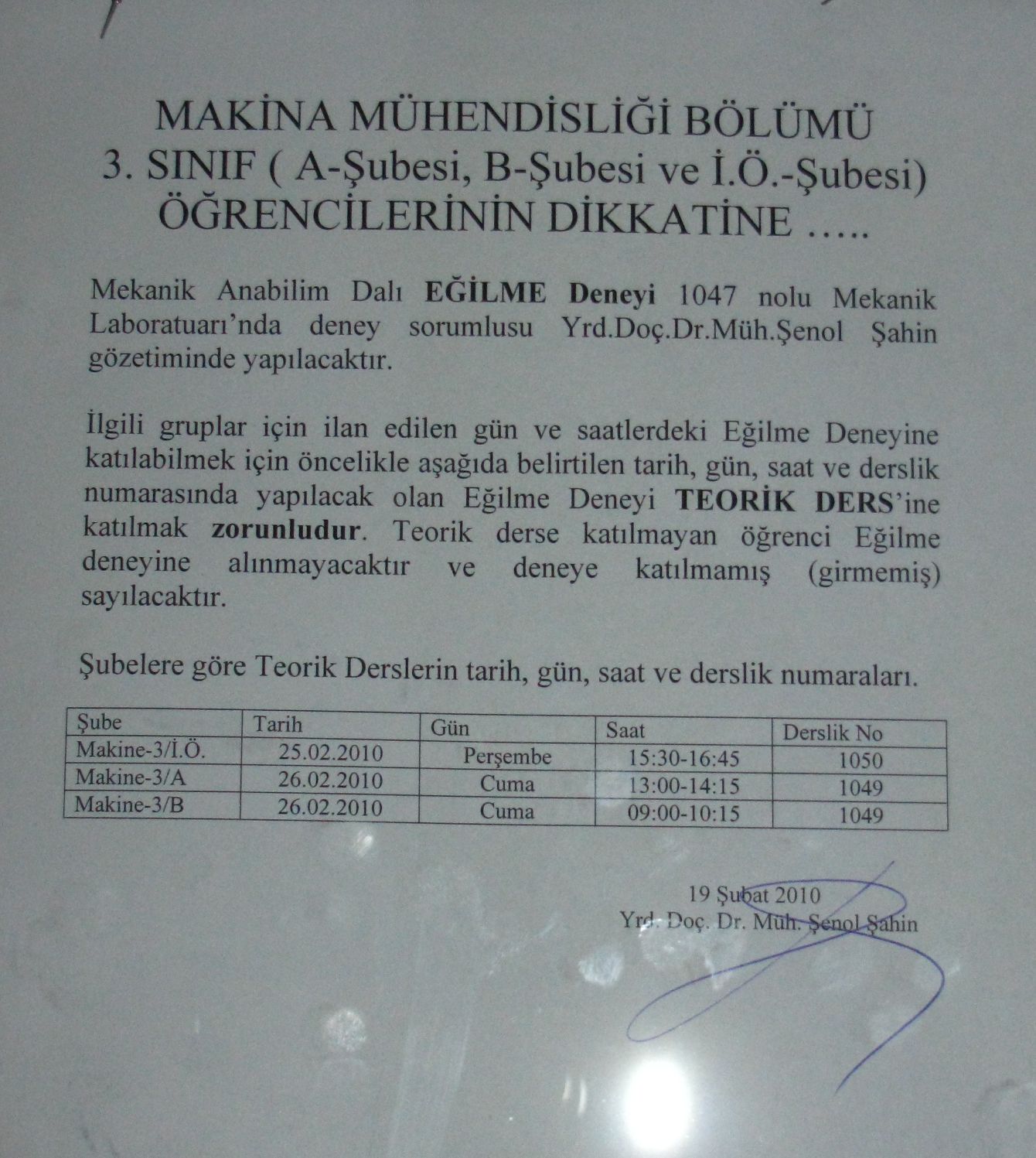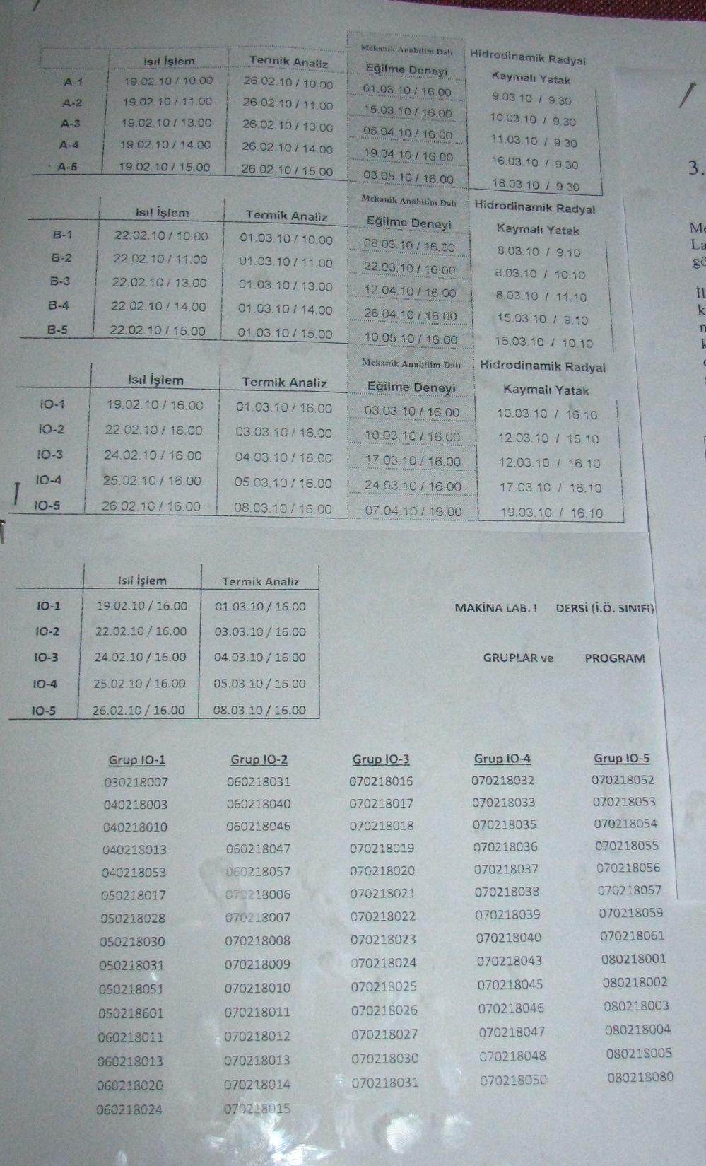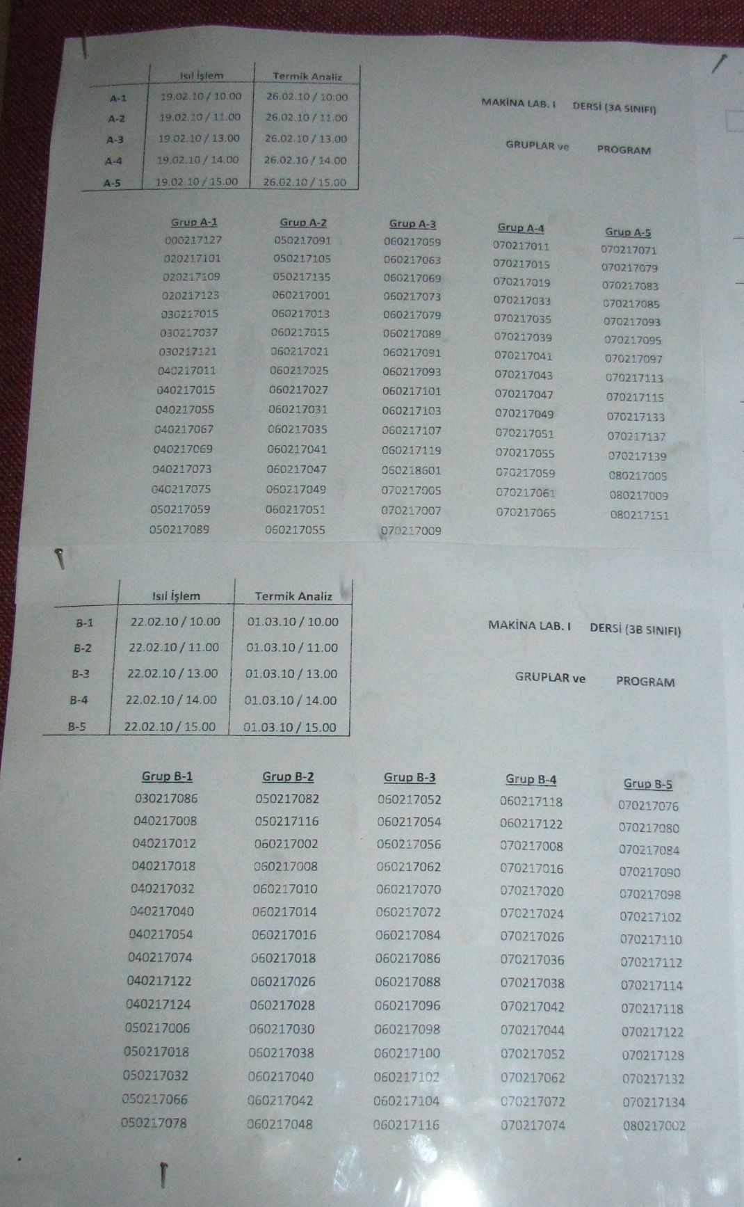 Karadeniz Teknik Üniversitesi Makine Mühendisliği Makine Laboratuvarı deney föyleri.